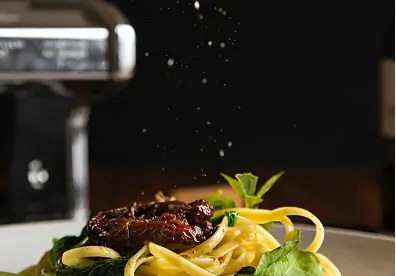 Capture the table-side toss at a 45° angle near a window. Use burst mode to freeze the pepper flecks and glossy strands.