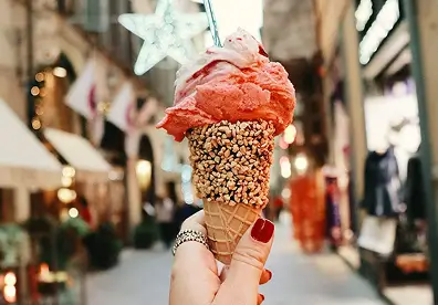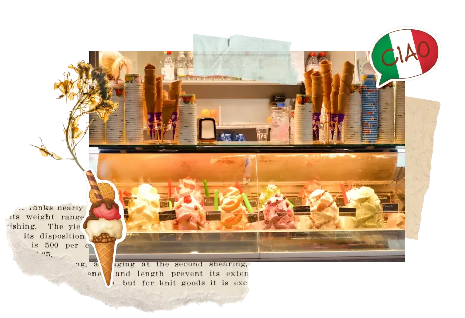 Find shade; gelato melts fast under the sun. Shoot cones against a pastel wall or cobbles; include tiny spoons for playful scale.