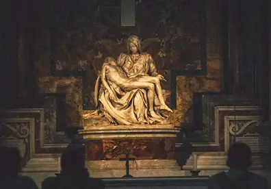 First chapel on the right inside St. Peter’s Basilica; go early morning for thinner crowds and quieter viewing.