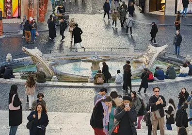 The boat-shaped fountain, the Barcaccia, recalls a flood that stranded a skiff here in the 1500s.