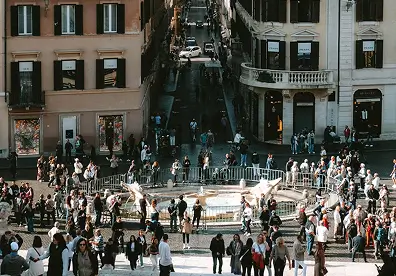 Treat the staircase as a short climb with rewards: Barcaccia splash, church view, then a gelato on a side street.
