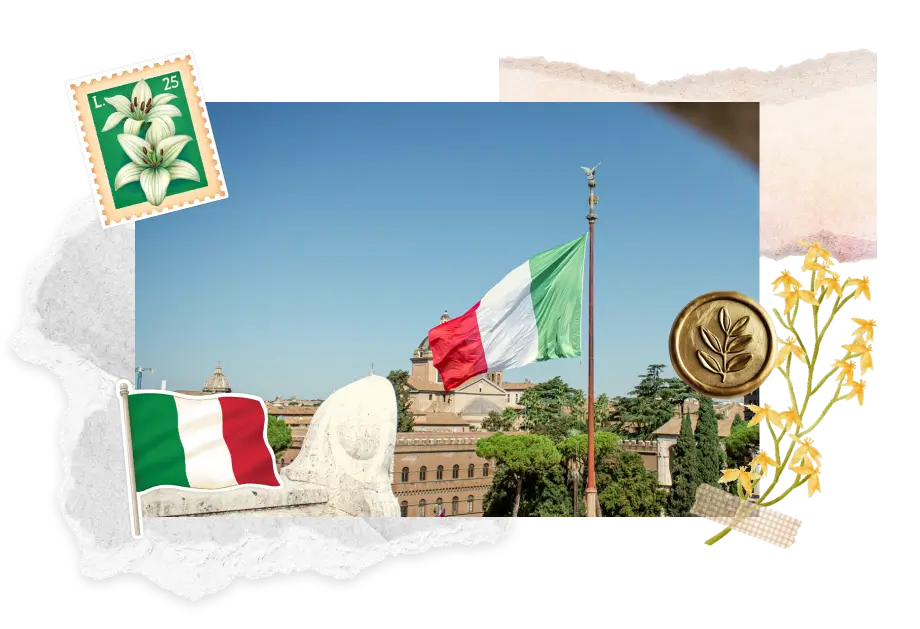 Green, white, and red stripes symbolize hope, faith, and charity. The tricolore waves from schools, ministries, and memorials across Rome.