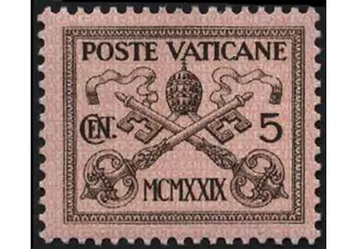 Pick Vatican stamps or a small lapel pin from the official post or museum shops; packaging includes the coat of arms.