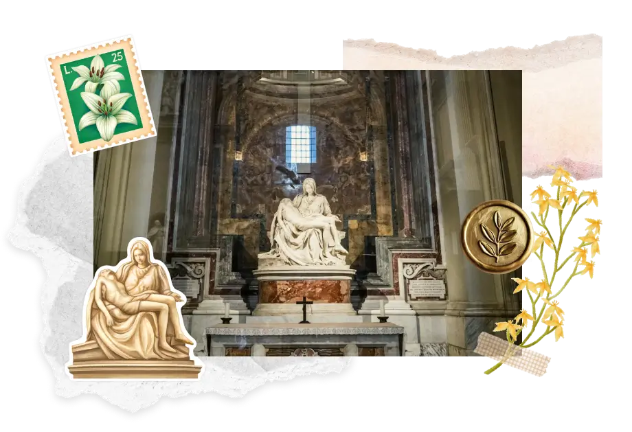 Choose a small relief plaque or high-quality postcard from St. Peter’s shop; keep tones neutral to match the marble.