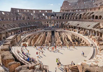 The arena floor was wood over sand (harena) set above a maze of lifts and cages called the hypogeum.