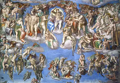 Spot Michelangelo’s self-portrait as flayed skin in the Last Judgment, his stark signature on faith and craft.